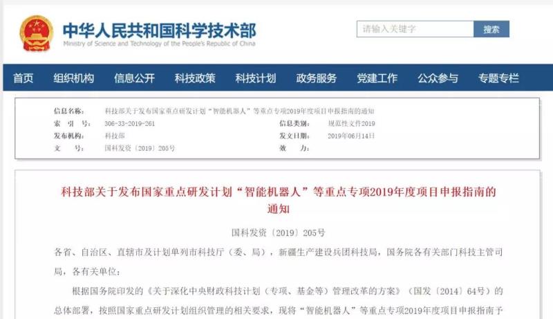 日前,科技部網(wǎng)站公布《國家重點研發(fā)計劃“智能機器人”等重點專項2019年度項目申報指南 》(簡稱申報指南)。申報指南顯示,“智能機器人”等6個重點專項涉及國撥經(jīng)費總概算約22.6億元。