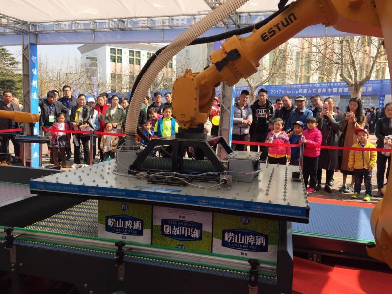 2017年4月2日,2017RoboCup機(jī)器人世界杯中國(guó)賽暨國(guó)家機(jī)器人發(fā)展論壇在山東日照開幕,將持續(xù)到4月4日。機(jī)器人世界杯是 國(guó)際上級(jí)別最高、規(guī)模最大、影響最廣泛的機(jī)器人賽事。 我應(yīng)邀參加展出我公司最新研發(fā)的智能碼垛拆垛系統(tǒng),受到了廣大參觀觀眾的圍觀和咨詢。