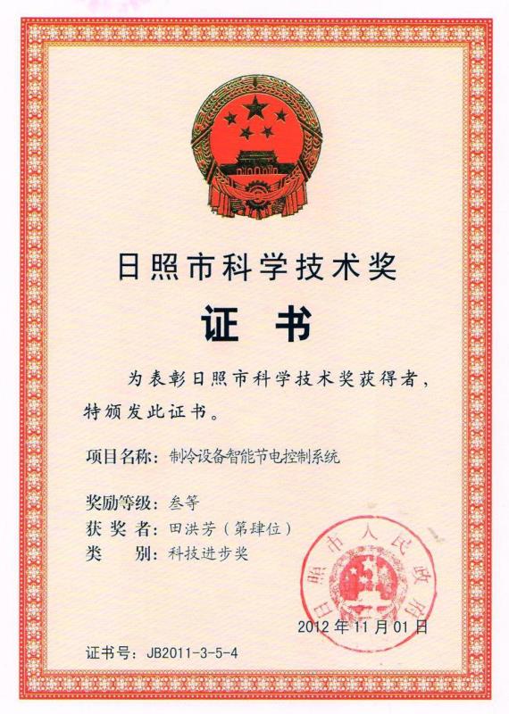 我公司自主研發(fā)的冷凍機(jī)智能節(jié)電控制系統(tǒng)榮獲科技進(jìn)步三等獎